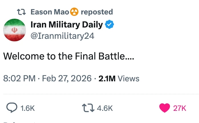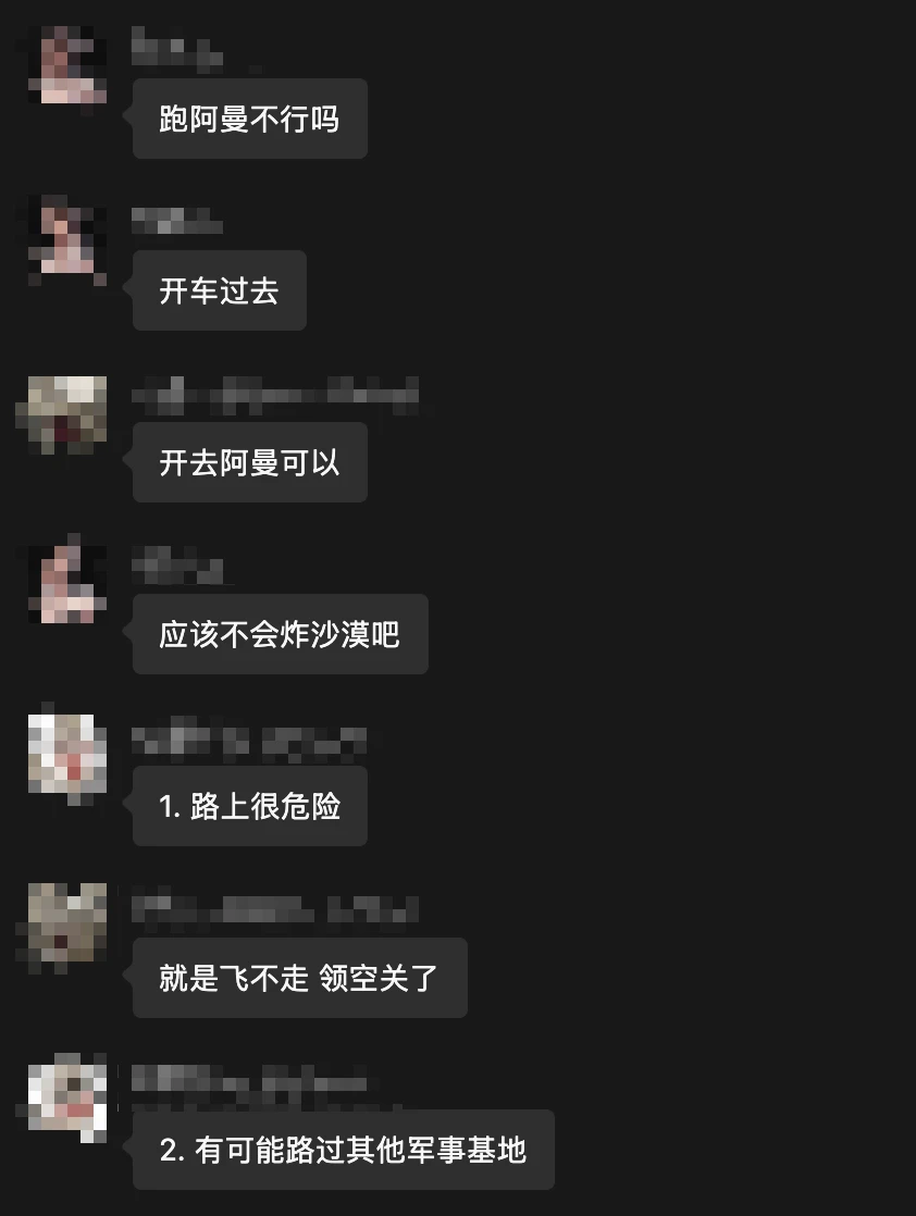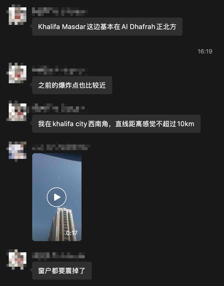 2026-02-2813:00正在学校吃午饭呢,突然看群里说学校附近美军基地(距离30km左右,但是伊朗打歪了导致导弹扔进隔壁Khalifa City了)被炸了🫠也是非常魔幻图片集合包含 4 张图片,点击任意图片可查看大图群友震感强烈图片集合包含 2 张图片,点击任意图片可查看大图导弹在头顶上被拦截也是一种奇观了🤯(当然希望大家都不要有机会见识这种奇观)图片集合包含 3 张图片,点击任意图片可查看大图老板不语,只是一味接单群友不语,只是一味点餐图片集合包含 3 张图片,点击任意图片可查看大图🙏Love & Peace