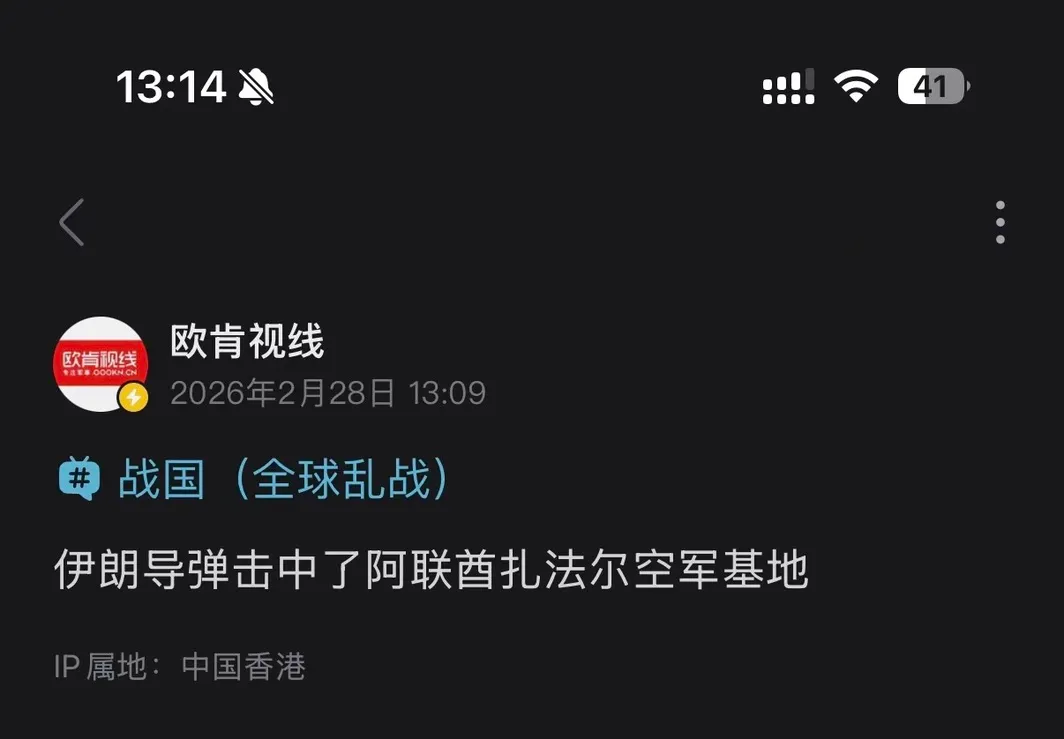那天中午,我正准备出门去学校吃午餐。阳光一如既往地落在楼道里,突然看见群里他们说导弹打过来的消息,此刻我才意识到,美伊战争已经真正开始。