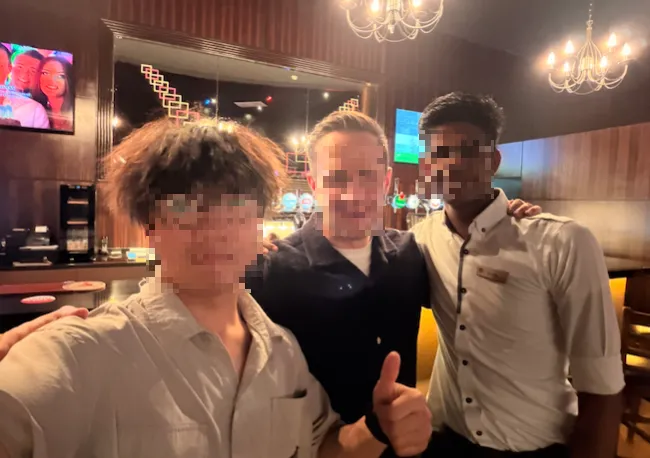 洗完澡后正好遇上演奏结束,我独自下楼在酒吧里找到还没离开的小哥,留下一张珍贵的合照“we are friends and i hope you all peace and safety🙏” 在动荡之中,人们更容易理解“朋友”二字的重量。