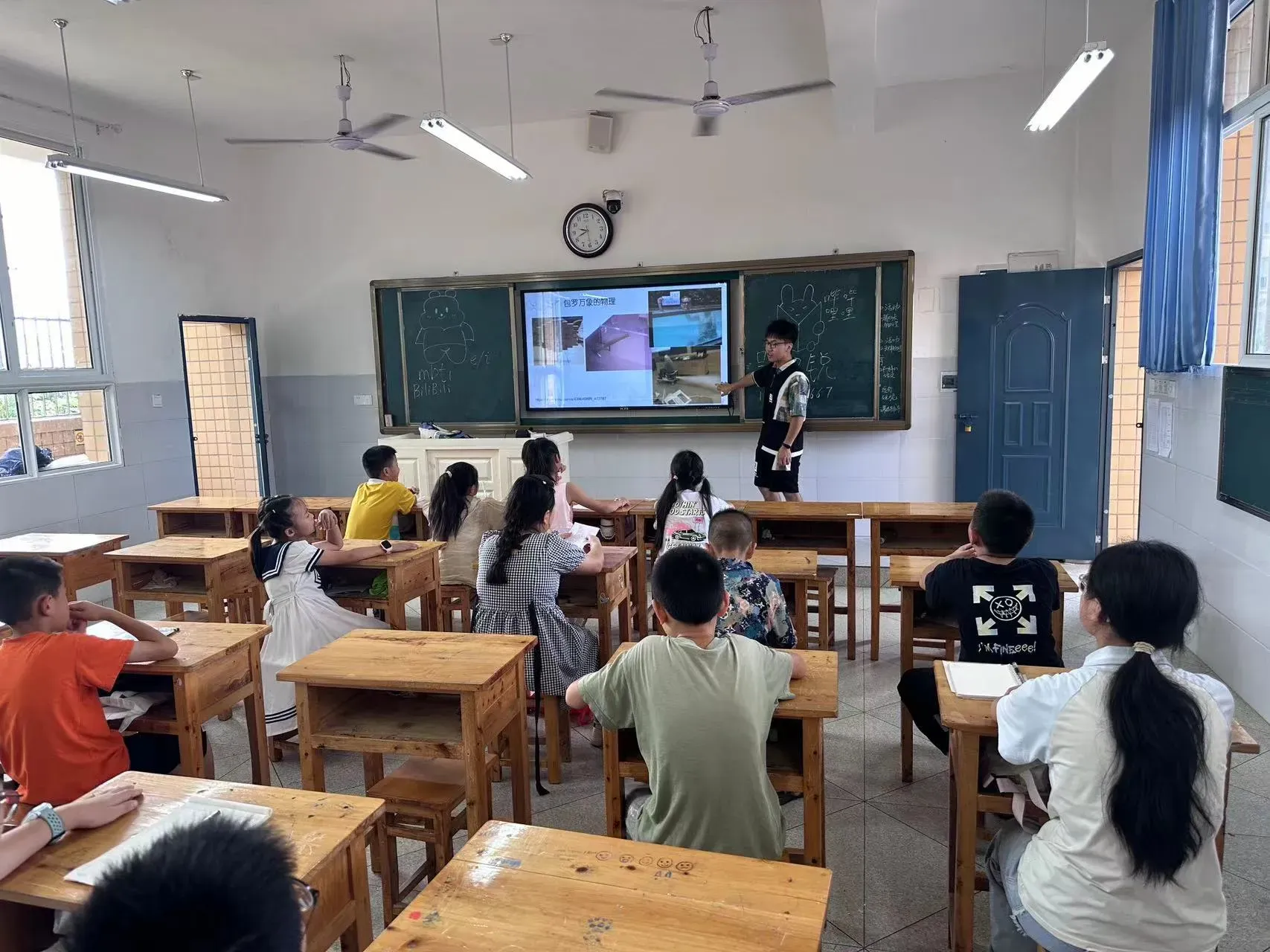 - 给二班小小登们上课,上课体验感很不错,小孩们非常活跃,也比较捧场。火柴人视频也精准的抓住了孩子们的眼球。(被送了一条口香糖)